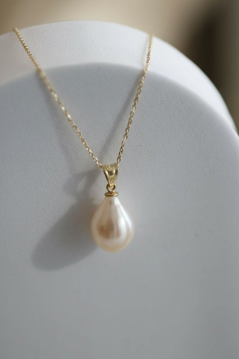 • Perlă naturală de cultură, lacrimă albă 9–9.5 mm