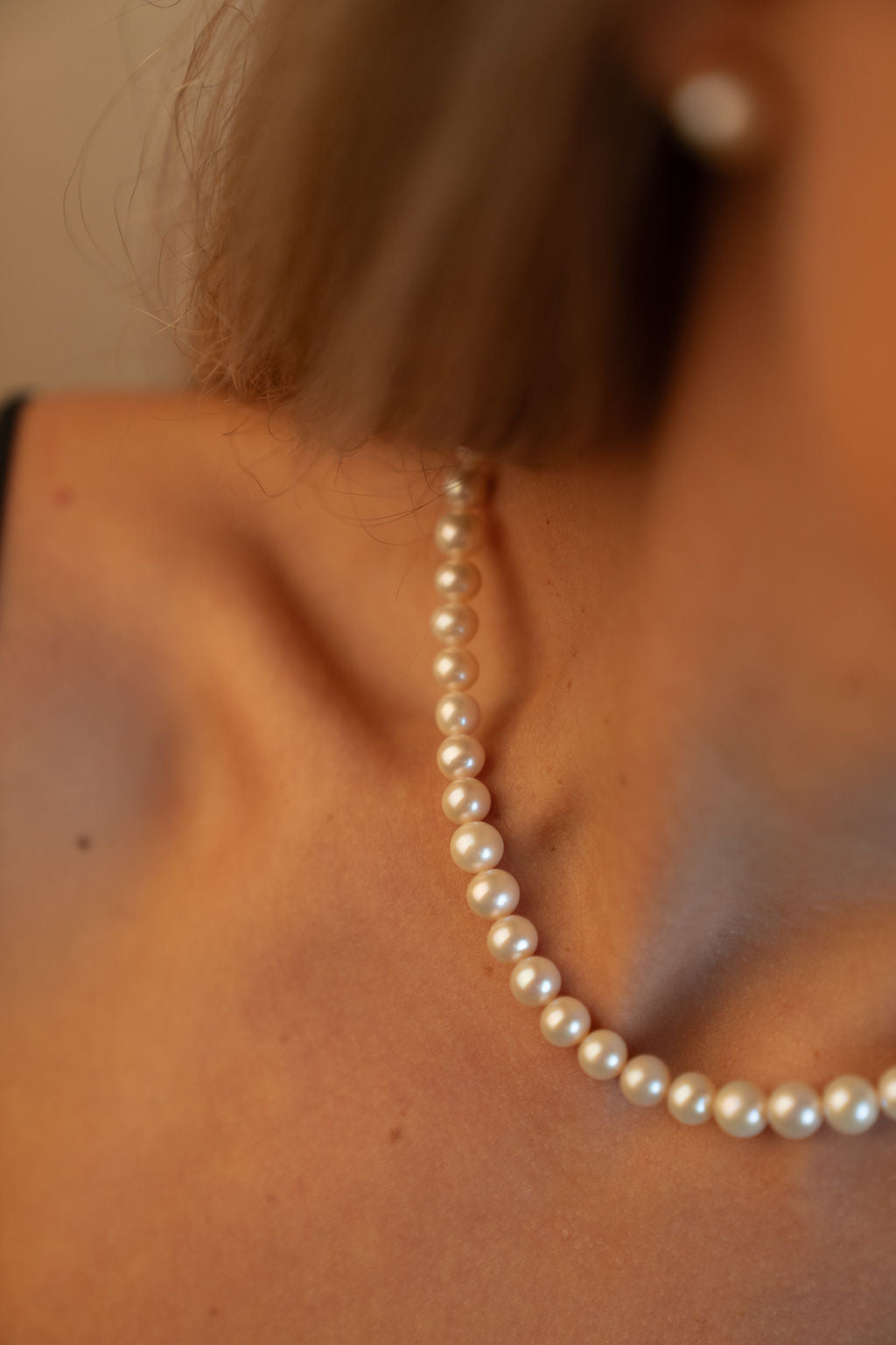 Colier cu perle de cultură albe livrat în cutie premium Royal Pearls