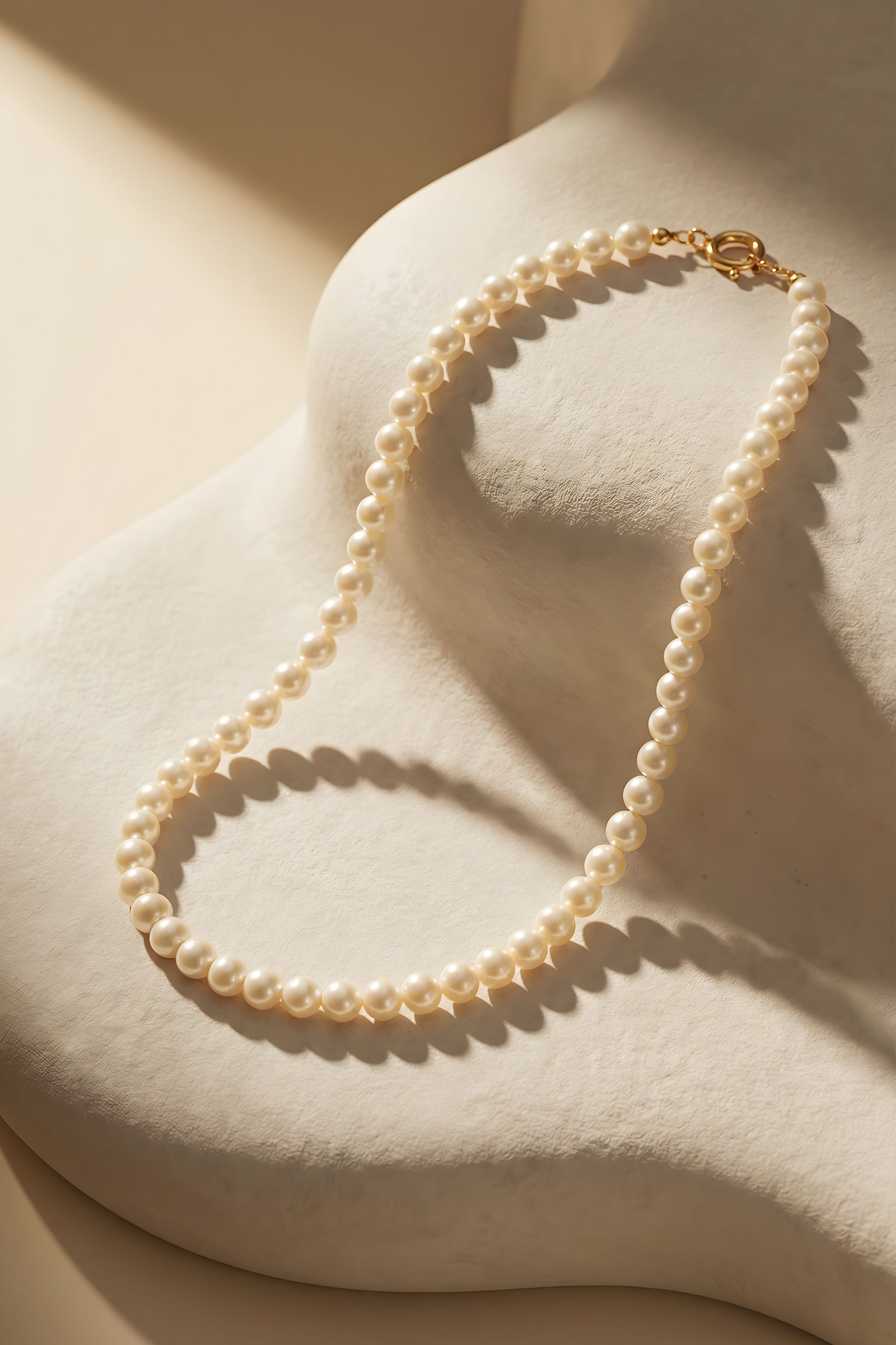 Colier cu perle de cultură champagne într-un cadru lifestyle elegant