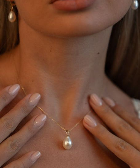 Cercei din aur 14K cu perle de cultură albe 8–8,5 mm în formă lacrimă — Elisabeth