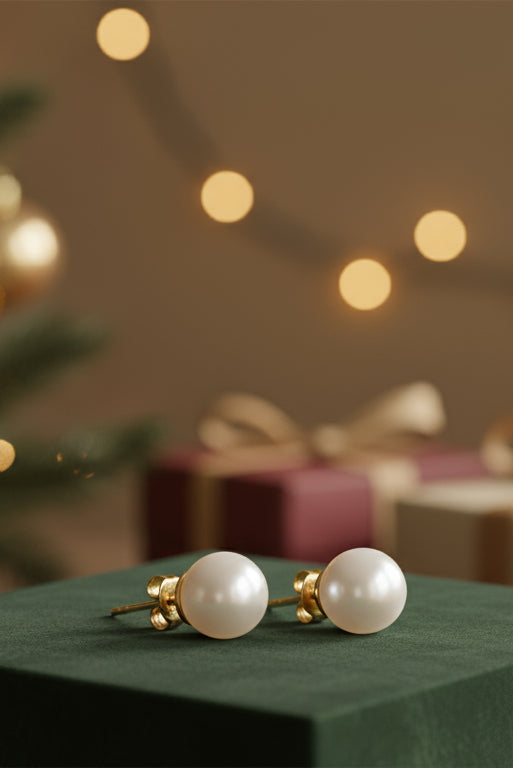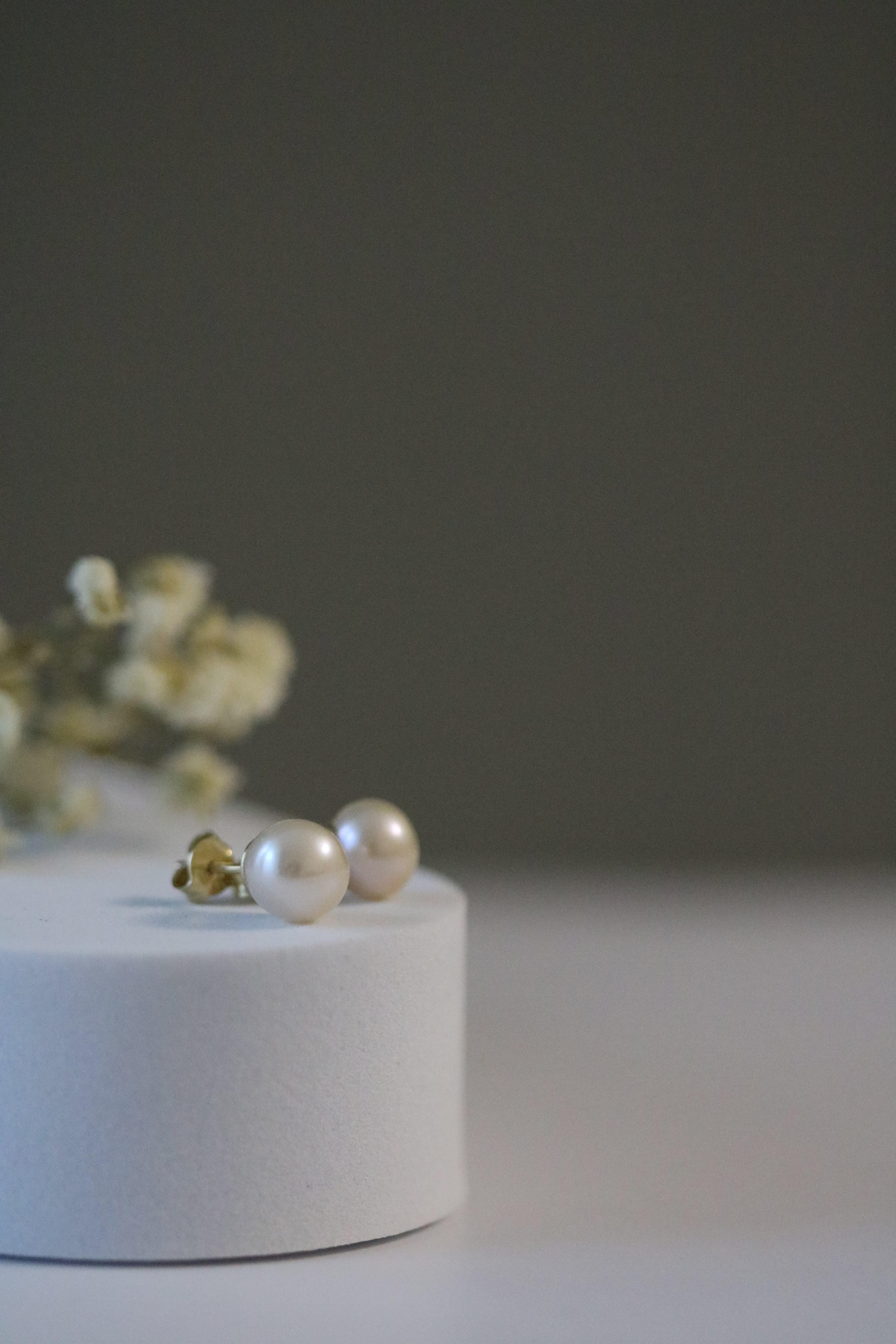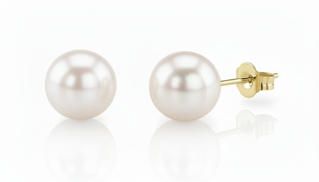 Cercei stud din aur 14K cu perle de cultură albe 7.5–8 mm