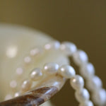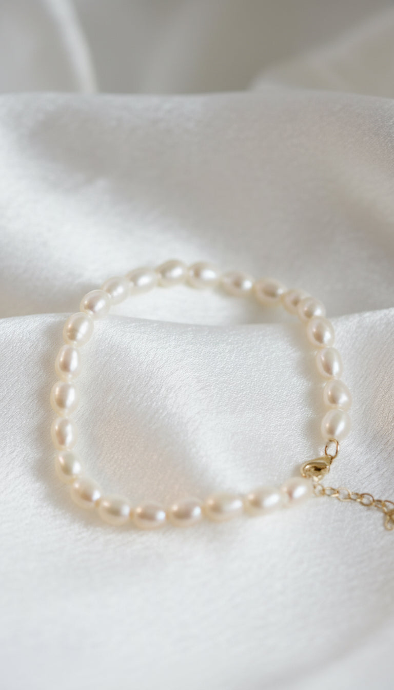 Elongé este o brățară realizată cu perle de cultură albe, în formă alungită (rice shape), selectate individual pentru luciul lor natural. Forma perlelor creează o linie fluidă care se așază elegant pe încheietură. Este o piesă care poate fi purtată atât în fiecare zi, cât și în contexte elegante, datorită aspectului discret și modern.