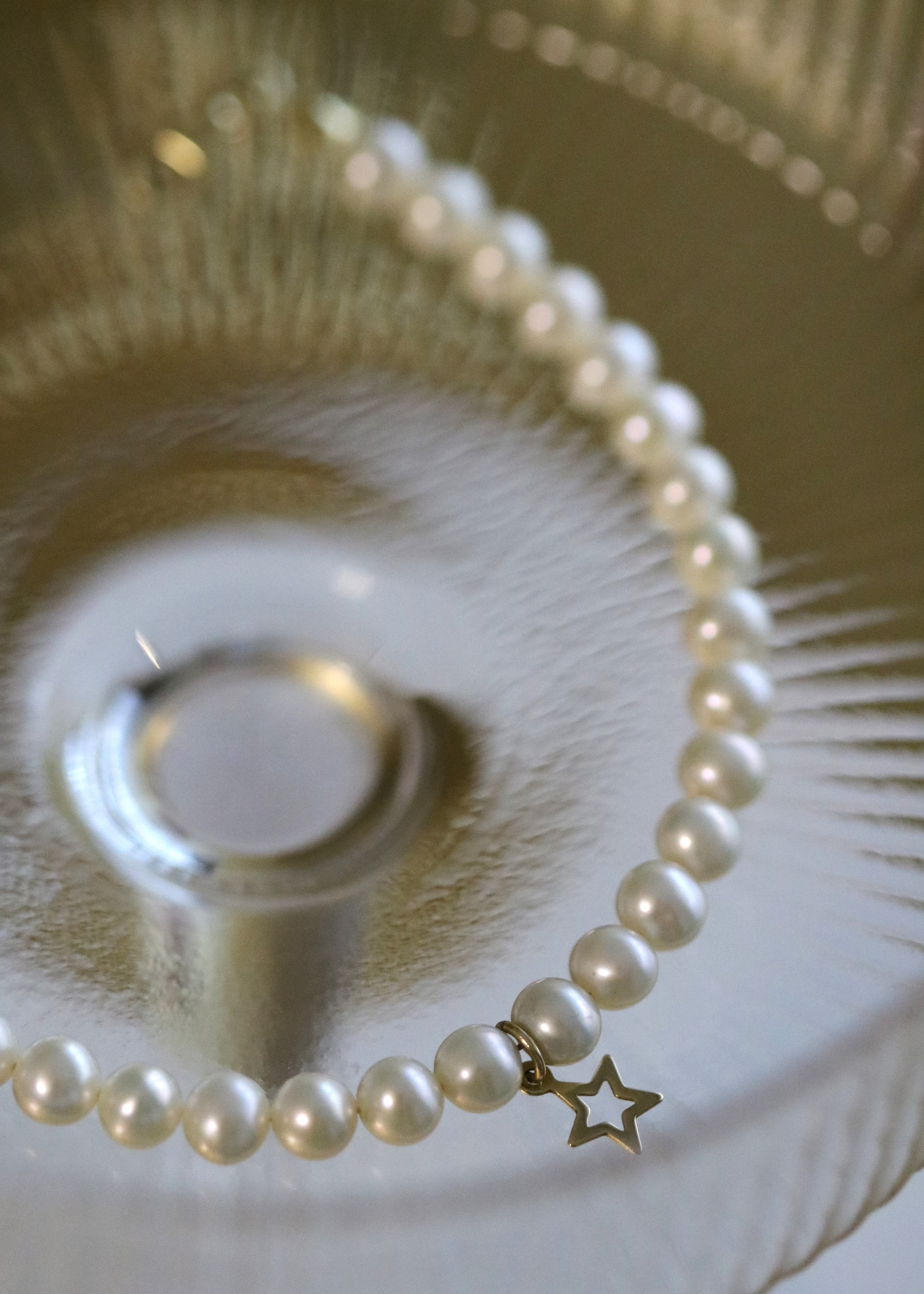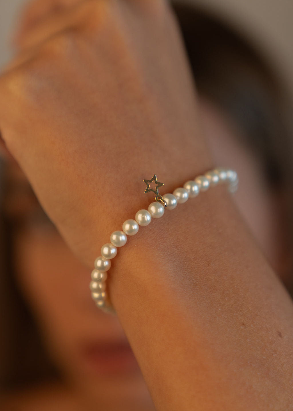 Star Dust este o brățară cu perle albe de 5–5,5 mm, luminoase și uniforme. Are o prezență clară, dar rămâne fină și ușor de purtat zilnic. Accentele de aur 14K completează bine luciul perlelor și dau un aspect ordonat, curat.