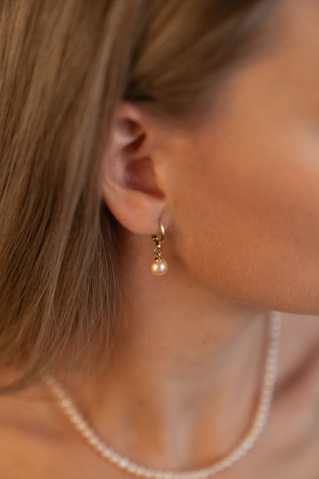Amélie este o pereche de cercei fină și feminină, cu perle de cultură roz (7–7,5 mm) montate în aur galben de 14K. Designul simplu, cu tortiță rotundă, adaugă o notă delicată oricărei ținute. Se potrivesc perfect atât la rochii elegante, cât și la o ținută lejeră de zi.