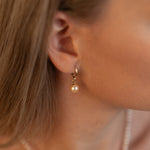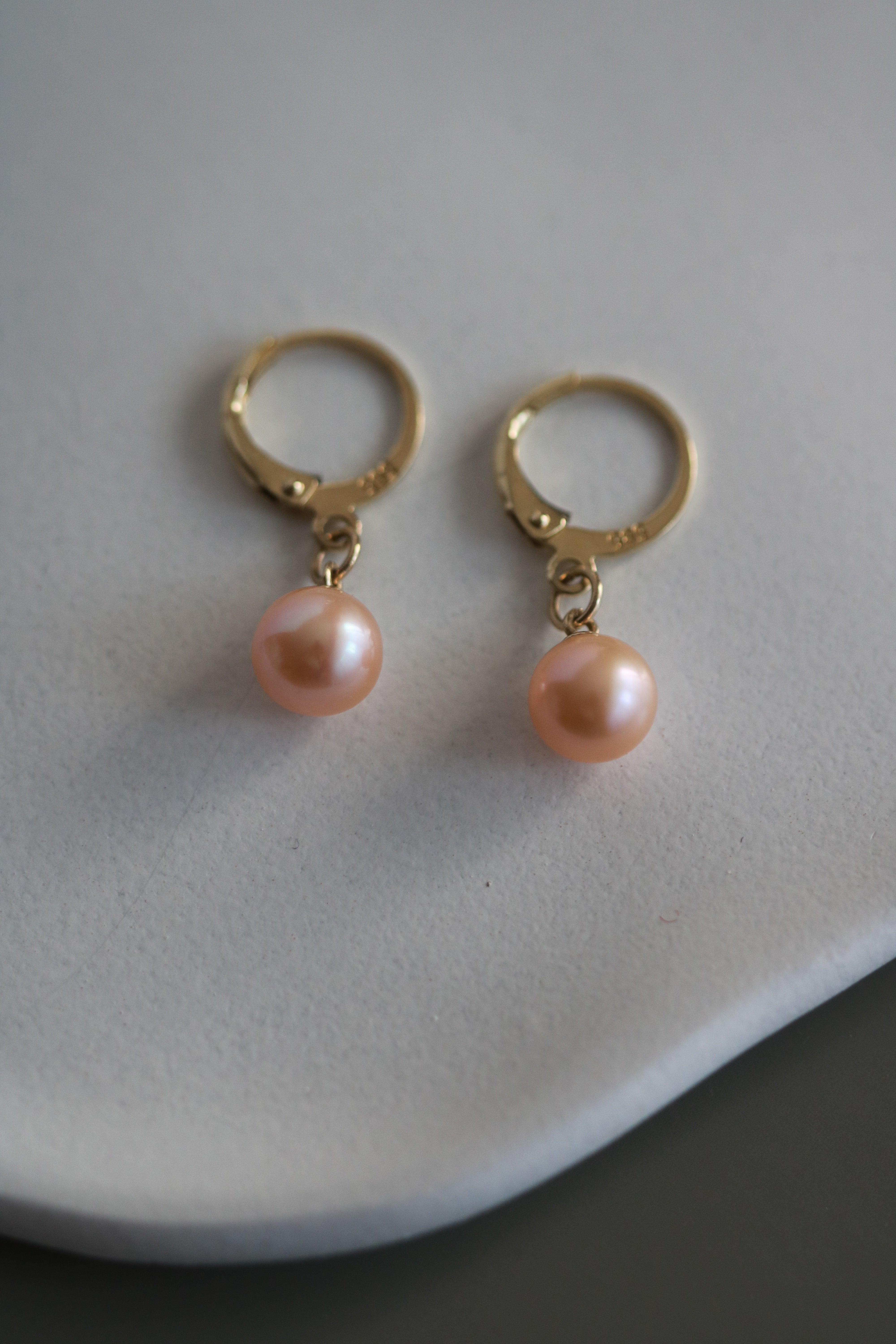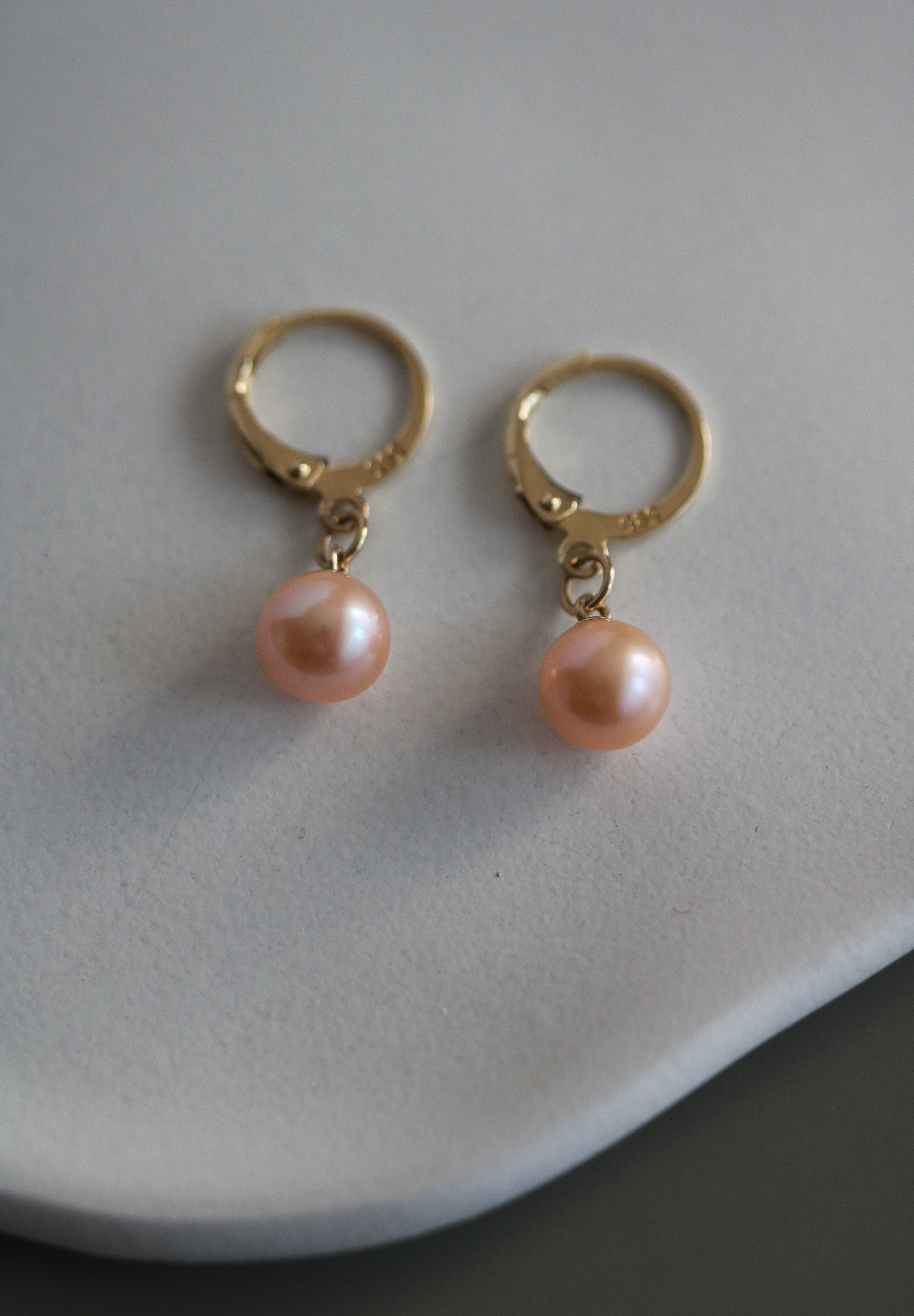 Cercei din aur 14K stud lung cu perle de cultură roz 7–7,5 mm — Amélie